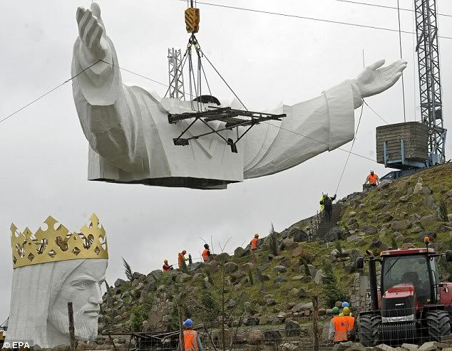 A estátua branca com os braços abertos e uma coroa dourada, elevando-se acima das planícies ocidentais polonesas em Swiebodzin, prevê concorrência ao ícone Cristo Redentor do Rio de Janeiro. Swiebodzin, é uma cidade de 40 mil habitantes a cerca de 50 km da fronteira com a Alemanha. O responsável pelo projeto foi o padre Sylwester Zawadzki, da paróquia local da Divina Misericórdia.